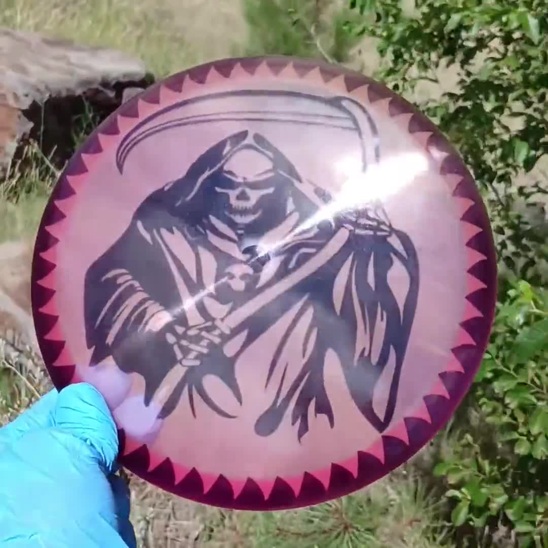 Skip to Videos All | Scary | Nature | Adult Stuff | Sports | Music | Star Wars | Mandalorian | TV & Movies | Tribal | SpinnerZ | Aqua Teen | Classic | Animation | Miscellaneous | Scary, Smaug Dragon Disc Golf Design Scary, Grim Reaper Awaits Disc Golf Design Scary, Grim Reaper Ninjutsu Disc Golf Design Scary, Grim Reaper Reaching Disc Golf Design